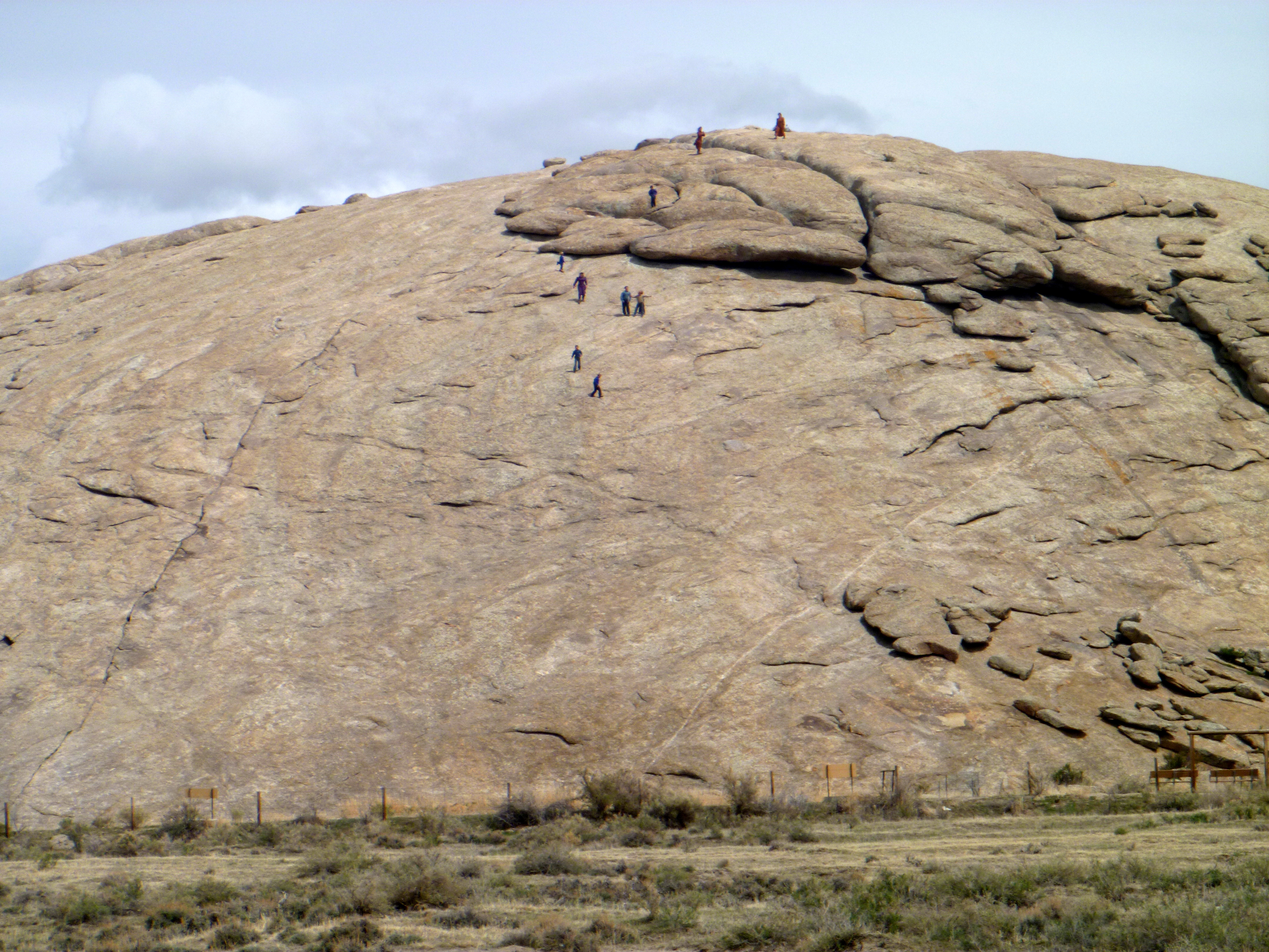 Many names are carved on the rock and you can get closer to read them. There was a party of highway travelers climbing on the rock. Be respectful of our national historic treasure and do no damage, take nothing away but your trash and enjoy what we as a nation have preserved of this unique, American history.