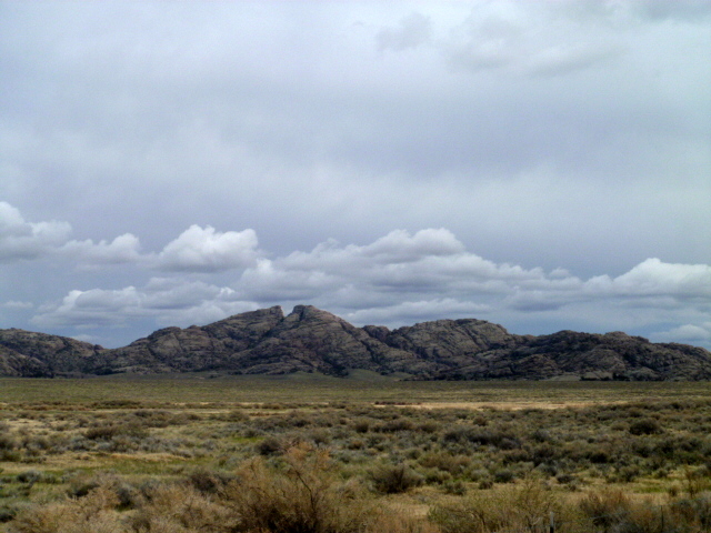 It is almost impossible to capture the vastness of the Wyoming “wide open spaces,” but this gives you an idea of what was traversed. There are ranches here and most of them hold large acreages. This arid prairie desert consists of a lot of sagebrush and tufts of bunch grass. It takes a lot of acres just to run one head of cattle and much more for an income-producing herd. It is green this spring but the grass is short amid the infinite growth of prairie sage.