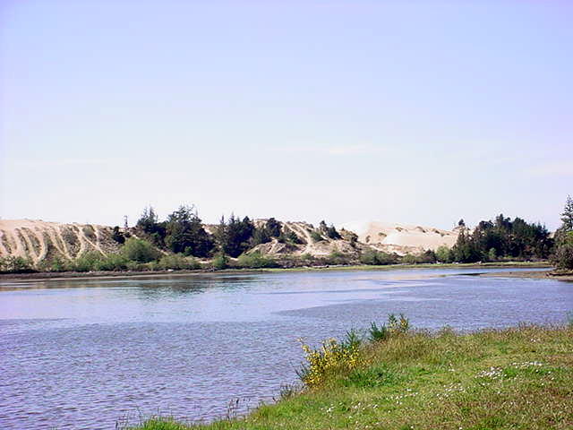 Time to visit the Oregon Coast Dunes. The famous Oregon Dunes National Recreation Area stretches from the north end at Florence to North Bend going south. They are part of the Siuslaw National Forest with various access points along the 43 mile stretch of sands. A variety of vegetation grows in the sand. Here are the Dunes at North Bend just before crossing the bridge.