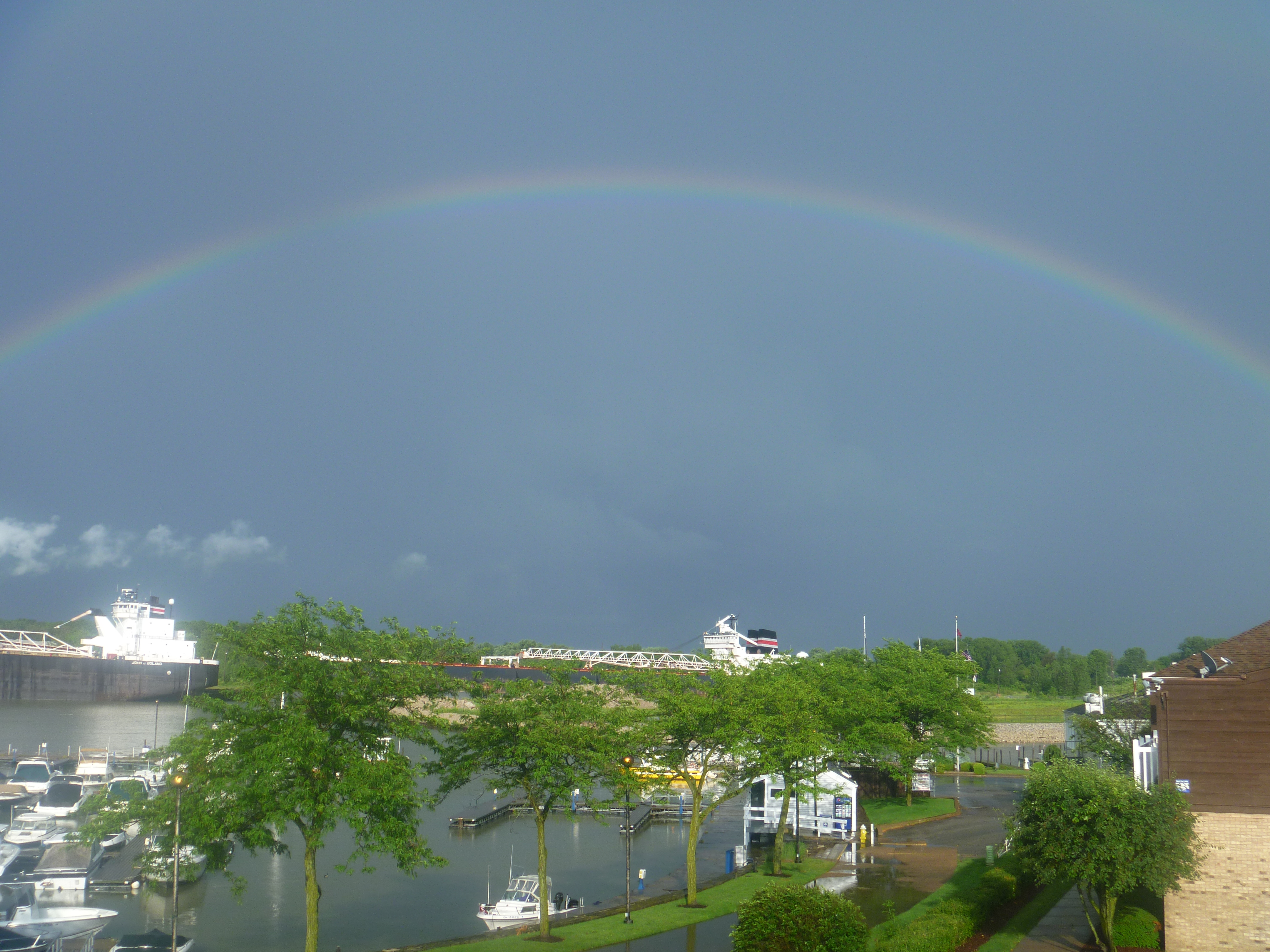 Full Rainbow Over Huron River Great Lakes Freighters, OhioRainbowOverFreightersHuronRiver