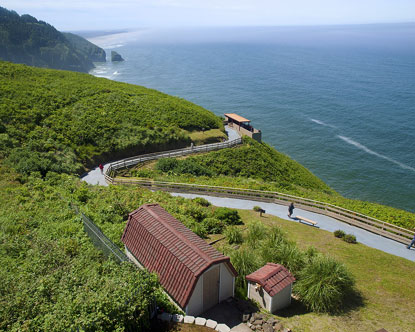 Just 11 miles due north of Florence on the Oregon Coast is America’s largest sea cave. Carved out of an ice-age beach seafloor of basalt by the powerful waves of the Pacific Ocean hitting on fracture zones in the hard rock, this massive cave is the year around home to about 200 Stellar Sea Lions.