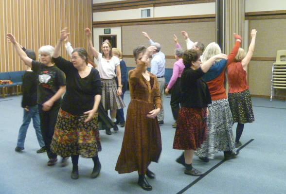 Late December 2015, we had a New Year’s dance with dancers from Coos Bay, Eugene, Florence and Creswell. Our dance friend, Sally Jenkins, can be seen in the center in white blouse leading a dance. Sally is from Creswell’s Movable Feet dance group. Instructors from 3 different dance groups took turns leading and teaching dances. We tend to stay home on NYs Eve but this is a fun way to celebrate the coming New Year a bit early as you dance the night away.