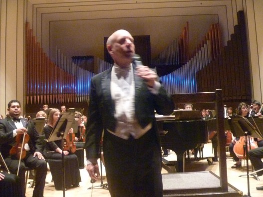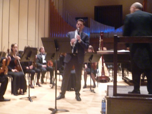 The third and faster movement starts with the tic toc sounds of a clock. While Dr. McGee is obviously concentrated on his music, he manages to smile at the violins during a brief pause. The music turns even jazzier as the clarinet must play well with others at times and does.