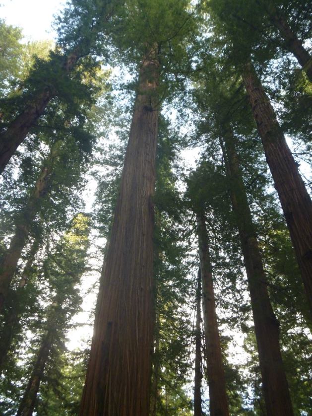 One of my favorite places of all time is the Redwood forests on the Northern California Coast. I love to hike among the tall trees where it is ever peaceful and quiet, especially on the high trails. From the ground looking up, the trees are awesome. But hiking near the tops of them is even more awesome. This photo is of a landmark Redwood named simply, Tall Tree. It was measured in 1957 at 359.3 ft high. A redwood tree can grow 3 to 10 feet per year so it could be between 180 ft and 600 ft taller now. This photo is zoomed from the ground looking up.