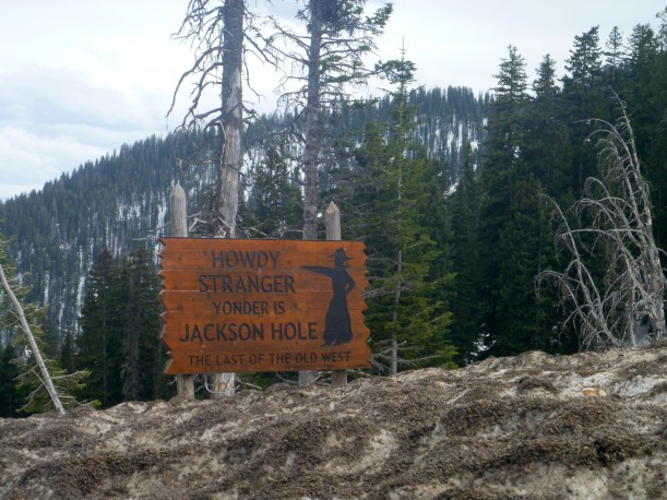 The sign in the corner might not be clear but here’s another one of it announcing that you are looking at Jackson Hole. Jackson Hole is a real ‘hole’ surrounded by mountains. It encompasses Jackson, Wilson, Teton Village and other areas within the hole. This sign points the way to the view.