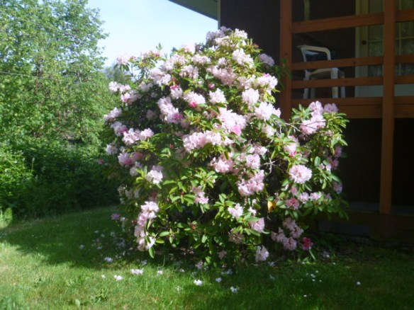 One more photo from Umpqua River Haven. This time our pink Rhody in full bloom! We love our Rhodys!