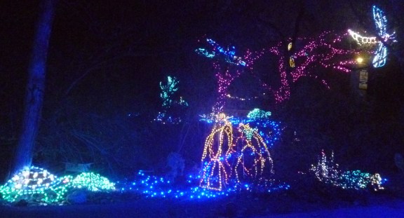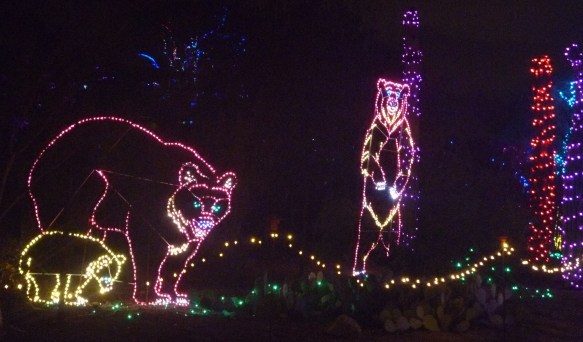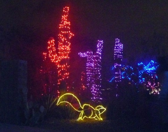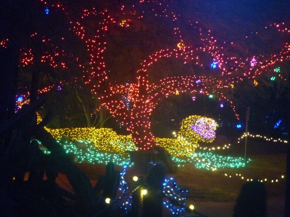 The Phoenix Zoo puts on a holiday light display that is second to none. Zoo Lights or Lights At The Zoo provides a spectacular array of light displays. We recently visited this night-time event at the zoo. I took 195 pictures, 57 of which will make it into 2 different blog posts! The first post here shows the colored lights creatively designed in oh so many ways.