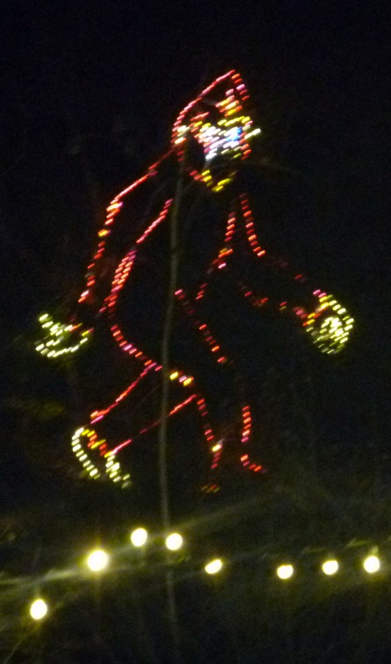 Many visitors dressed for the occasion with santa hats and lights that blinked, twinkled or stayed stationary. This photo is of a VERY young visitor being pulled in a wagon that is all lit up. She had a head band with 2 twinkling lights and was on the move as you can tell.