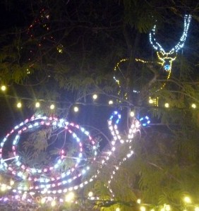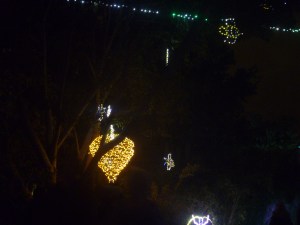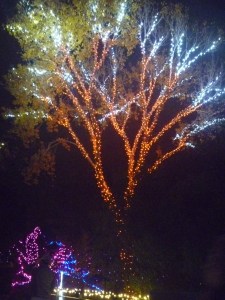 There were a variety of trees wrapped or strung with lights. On this one, the lights rolled off and on. I somehow managed to capture it when the lights were at their best.