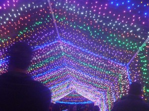 Many visitors dressed for the occasion with santa hats and lights that blinked, twinkled or stayed stationary. This photo is of a VERY young visitor being pulled in a wagon that is all lit up. She had a head band with 2 twinkling lights and was on the move as you can tell.