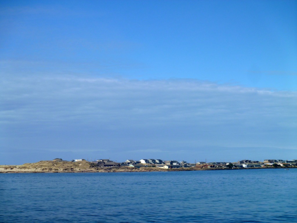 From this same vantage point can be seen the sandbar peninsula. It probably has a name but I’ve never learned it. However, you can see the housing that is crowded onto this foundation of sand. When the winter winds blow, the sands move and can drift high against the buildings to inhibit entry into the houses. Most of these are summer homes however large they are. Not sure I’d want to live on a sandbar as I’m sure it could disappear at the ocean’s whim.