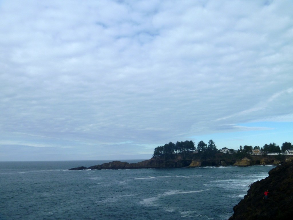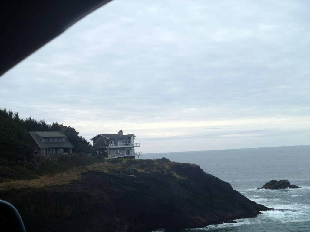 A short distance north of Cape Perpetua is Yachats. Yachats is a very popular ocean resort town with more housing that the population would warrant. Most of them are summer homes, however big they may be. There is an ocean drive just before you cross the bridge into Yachats. It has great ocean views as you drive right next to the shore. At low tide, you can probably do some tide pooling and in the cove dig for clams. This is the housing you can see from Ocean Dr.
