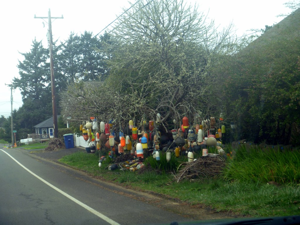Traveling on this back road you come to the turnoff to the Devil’s Punch Bowl. A local resident must have spent much time collecting these colorful boat ‘bumpers’ to hang near the entrance.
