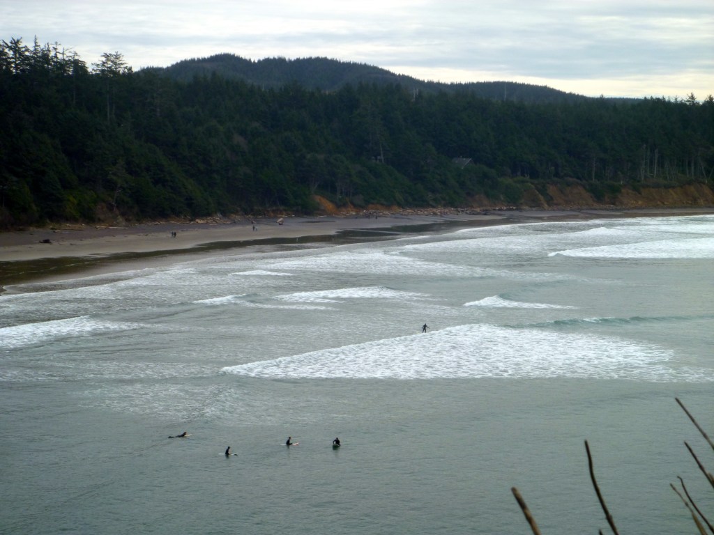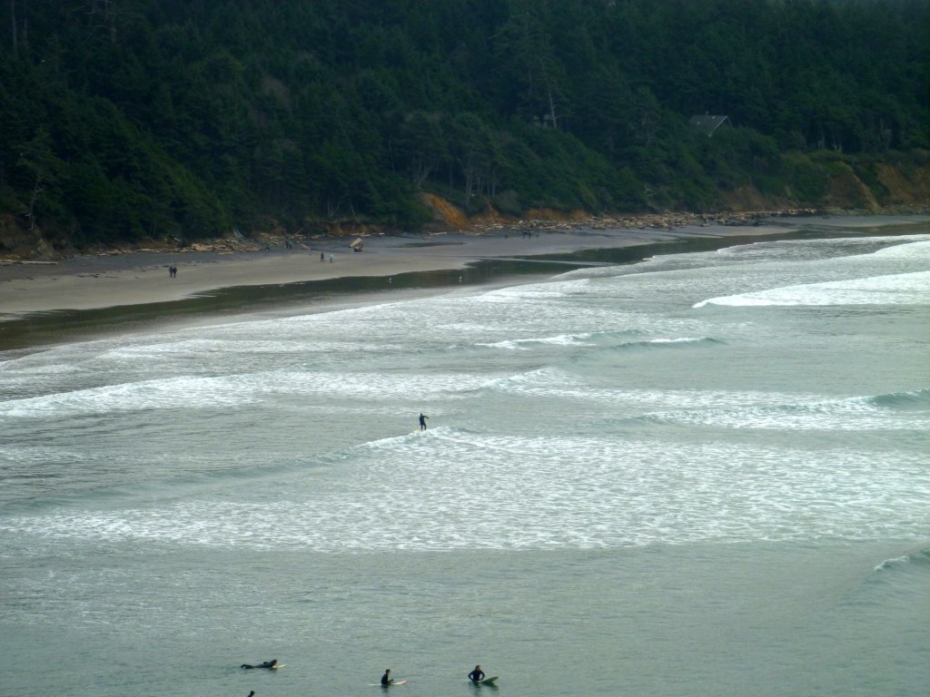 Again, the Oregon beaches are vast. And this one was filled with surfers. It didn’t look to me like the surf was very good and most of them just fell when they tried to ride a wave. But this one fella made it up. He was standing backward on his surfboard for most of the ride before finally turning around for a bit before the ride was over.