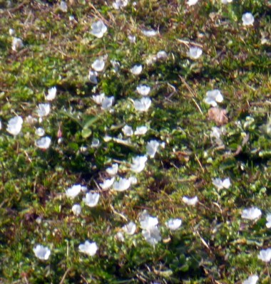 This is the time of year when the mini-Daisies bloom all over the ground. But here at the Devil’s Kitchen hillside, I came across some pretty small flowers that are different. They have colored dots on the petals. I’ve no idea what they are but they blend well with the mini-Daisies.