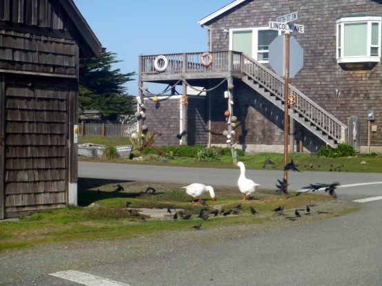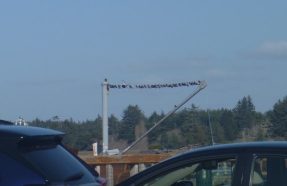 Old Town Bandon is filled with great seafood and shops of all kinds—fudge, antique, secondhand and more. In more normal times, it is fun to peruse through the shops and maybe find a treasure or two and people were. But for myself, I avoid shopping anywhere these days and just enjoy the scenery. There were a lot of pigeons and they appeared to be posing here on the railing. Then something disturbed them and they flew off gathering others as they went and became a great flying flock.
