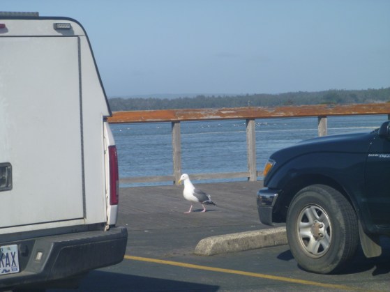 Parked to enjoy the expansive ocean view, oyster beds and jettys where the