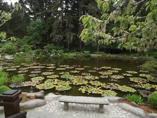 The pond supplies endless, lighted views. The cranes and salmon are no exception.