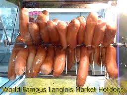 The Langlois Market claims its hot dogs are world famous. They are made with both beef and pork and served with a secret family mustard recipe and just the right kind of pickle. People come from near and far just to have one of these dogs!  http://www.langloismarket.com