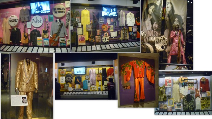 And then turn your attention to level one. The inductees are all honored on this level with displays and movies well worth watching. Displays include costuming, instruments and life-sized statues of these music artists. No matter your age or generation of music, there is something here for everyone. There is too much to describe, so we leave you here with some photos of some of the displays. Enjoy the scroll through this portion of the Rock and Roll Hall of Fame!